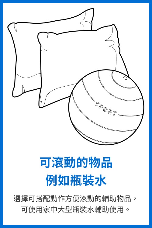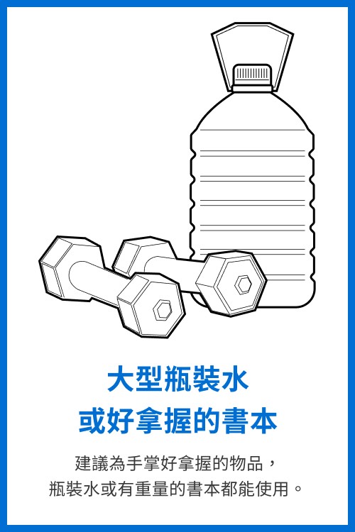 一般居家運動若想增強力度,建議可使用輔具,增加肌力訓練的重量,透過輔具運動也有助於肢體伸展、延伸!