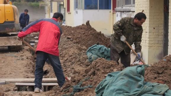 在家畜改良站家属楼施工现场,工人们正在紧锣密鼓地施工,改造内容包括墙面粉饰、铺设路面、合理规划停车位等配套设施,改造完成后将极大改善居民的生活环境。