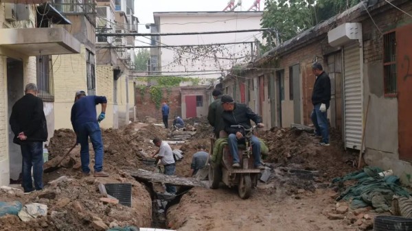 与此同时,粮食局宿舍改造也在如火如荼地进行着。施工现场,工程车等大型机械运转不停,工人们正在进行沟槽挖掘、管道铺设、屋面防水改造等作业,现场秩序井然,业主们对此次改造提升都十分期待,盼望着自家小区来个“颜值大翻新”。