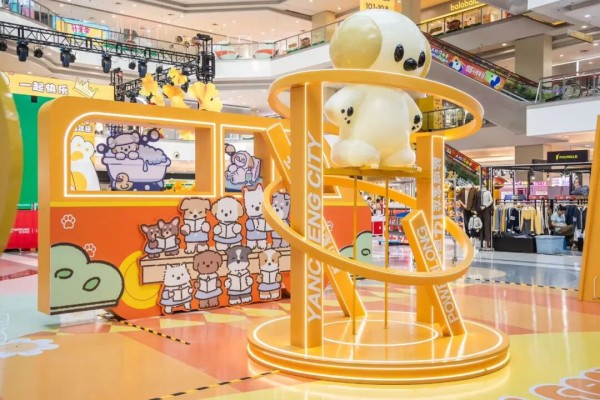 ■潮流IP秀场:嫁接顶流IP,制造稀缺性话题。上海青浦宝龙广场与QQ音乐合作,获得韩娱当红组合H2H最新专辑授权的“痛楼”展示,作为全国仅4场、上海唯一的落地活动,瞬间引爆粉丝圈层;江苏盐城宝龙广场以原创IP“小狗柑柑”主题美陈,用治愈系的形象建立起与市民的情感纽带。