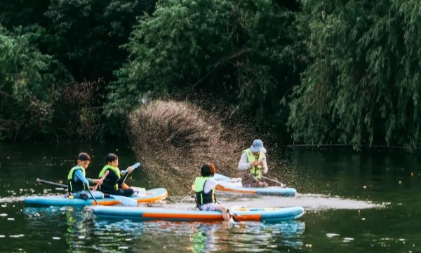 水域之上,桨板划过琉璃般的水面,勾勒专属秋天的诗意,为秋日户外增添独特的亲水乐趣。参与者们挥动船桨,泛舟于碧波之上,在凉爽的秋风中从水上视角欣赏公园美景,成为假日里一份别致而难忘的体验。