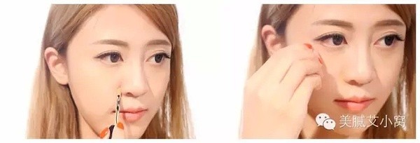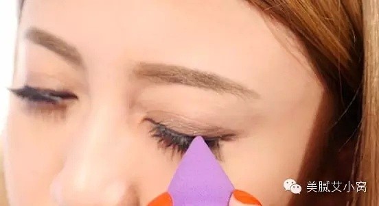 Step 3.鼻翼、眼角等局部遮瑕,可先将遮瑕膏点上后用海绵蛋的尖头压擦涂抹。
