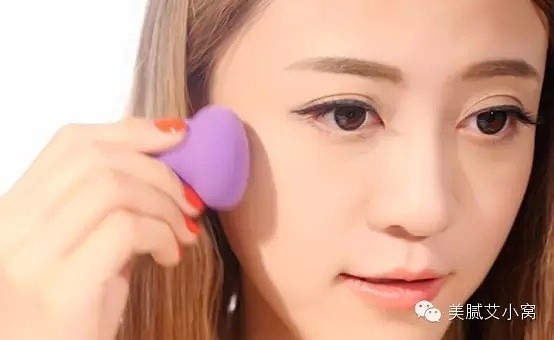 Step1:先用直角边的侧面取粉底液,以涂抹方式均匀上妆