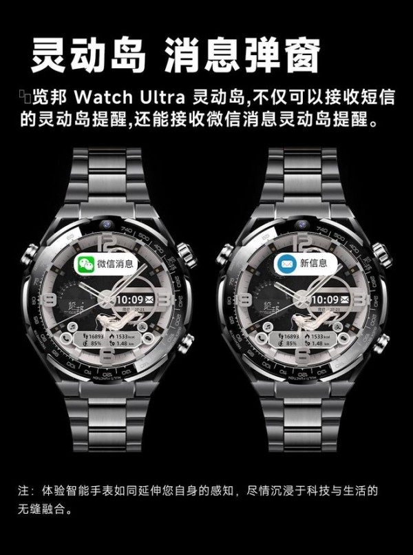 灵动岛功能是览邦Watch Ultra的一大亮点,它使得手表的显示区域可以根据不同的使用场景和功能进行动态调整。这一设计提供了更加智能和个性化的用户体验。例如,在接收电话时,显示区域可以扩展以显示通话相关的信息;而在其他时间,则可以收缩回一个小岛的形状,不影响其他功能的正常使用。这种动态性和交互性不仅提高了手表的利用率,还使得用户在使用过程中能够更直观地获取信息,提升了便捷性和互动性。