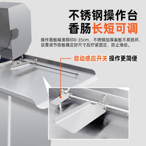 松紧长短可调,适合不同规格的香肠制作。 自动感应开关,操作简单,减少手动劳动。 精准印刻的操作面板,方便用户快速设置香肠长度。 不锈钢加厚板设计,不易损坏,确保使用过程中的稳定性。这款灌肠机非常适合喜欢DIY美食的用户,尤其是家庭聚会、派对或是想要自己动手制作香肠的朋友。它能让你轻松享受香肠制作的乐趣,带来舌尖上的美味体验。