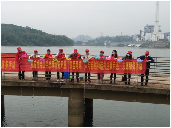 在第51个“世界地球日”来临之际,合山市于4月17日上午,在红水河河畔举行以“珍爱地球·人与自然和谐共生我示范”为主题的志愿服务活动启动仪式。