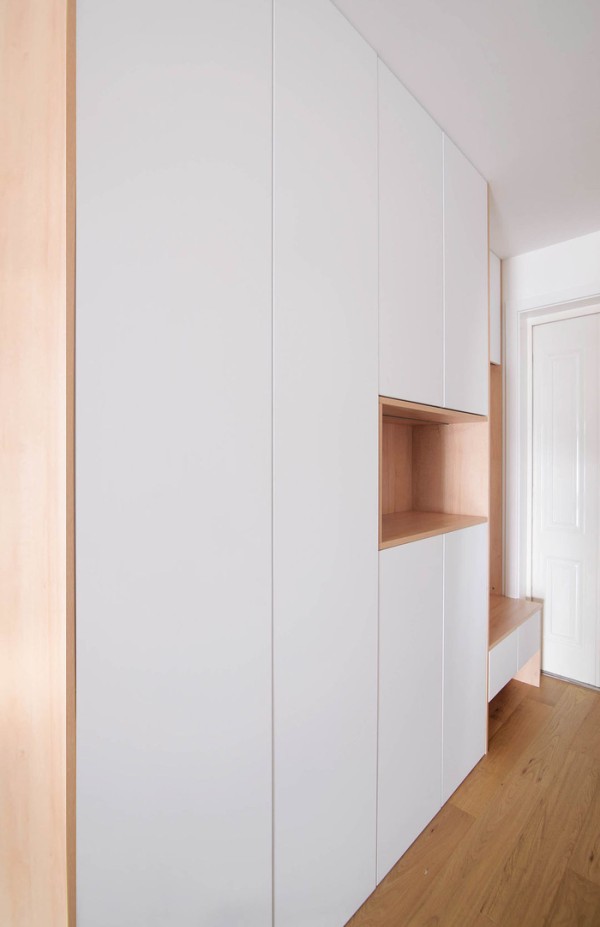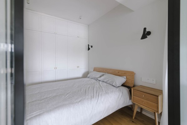 次卧的设计则比较简单,但是很有收纳的空间。白色的柜子干净整洁,配上木材元素,更是感到元气满满。