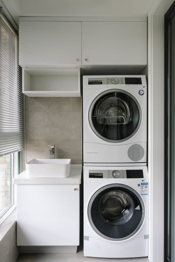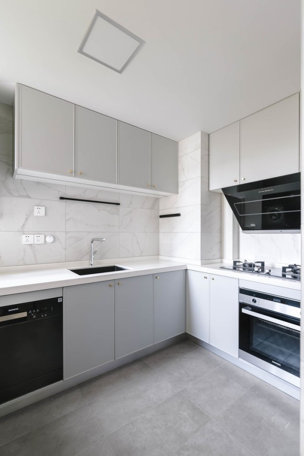 厨房的布置主要以浅灰为主。女主人十分的喜欢这样简单的颜色,它认为厨房并不需要过多艳丽的颜色修饰。明艳系会让整个空间看上去比较杂乱。反而是这种简单的设计更能够体现出生活的烟火味。