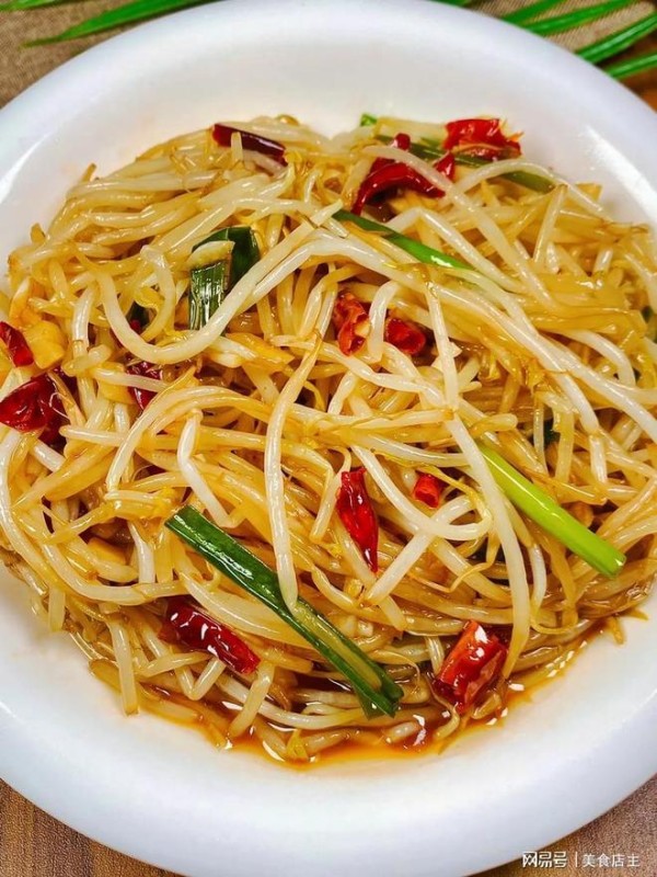 准备食材:黄豆芽,蒜末,干辣椒,葱段。