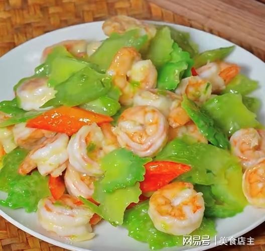 7. 合并炒制:将炒好的虾仁放回锅中,与苦瓜一同翻炒,加入适量盐、白胡椒粉调味,翻炒均匀。最后加入少许鸡精(可选),继续翻炒均匀。