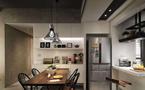 餐厅也是家中较好的放冰箱区域之一,因为餐厅是与“食物”有关的空间,所以冰箱设置在这里不会有“突兀感”,而且餐厅一般距离厨房较近,对冰箱的使用也会较方便。