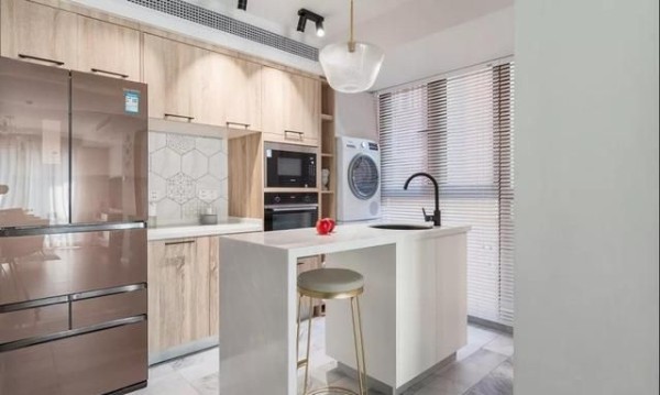 在不同的家庭中,冰箱的使用功能不尽相同,结合它的使用功能找到较好的摆放空间,使用方便,也能更好的体现它的“价值”,比如冰箱主要用来储备酒水、饮品、零食等物品,那我认为西厨区会是它较好的放置空间……