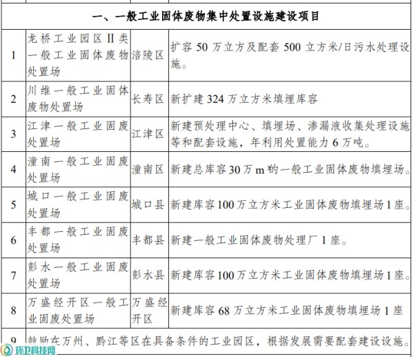 规划要求,到 2025 年,大宗工业固体废物贮存处置总量趋零增长,综合利用水平显著提升,大宗工业固体废物综合利用率达到70%。在万盛、涪陵等地建成 9 座一般工业固体废物处置场,其中规划建设万盛经开区、江津、潼南、开州、丰都、城口、彭水等 7 座一般工业固体废物处置场,改扩建涪陵龙桥、长寿川维等一般工业固体废物处置设施。