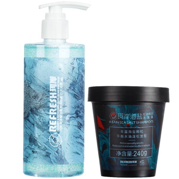 2. 珂岸华熙生物海盐洗发膏与沐浴露套装:温和清洁,补水保湿