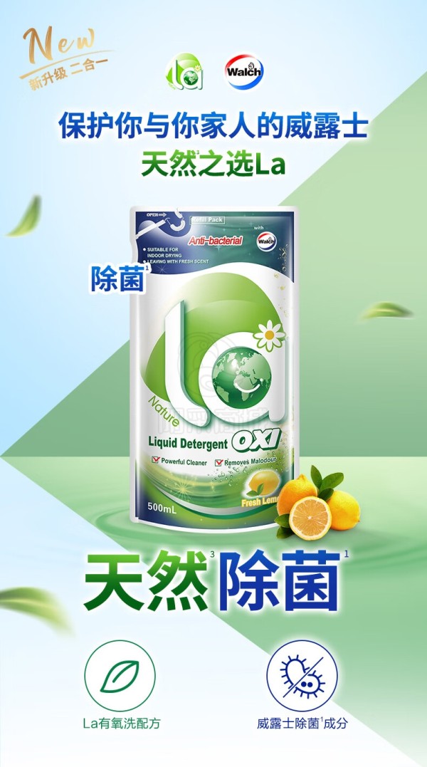 威露士(Walch) ZS521除菌有氧威露士健康生活家清套装LA有氧洗衣液2.68L松木+LA有氧洗衣液1L松木+La有氧洗衣液柠檬袋装500ml