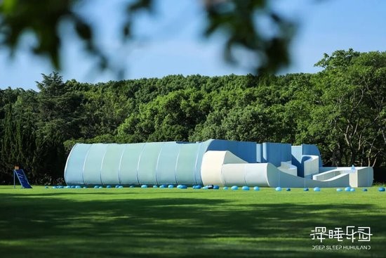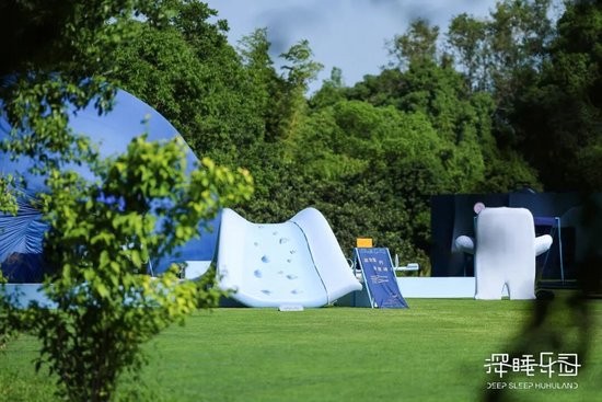 亚朵星球在线下打造的 “深睡乐园”,用蹦蹦床、滑滑梯、拉链小火车、亲肤吊床、海绵迷宫等装置将新产品的核心设计具像化。(左右滑动查看)