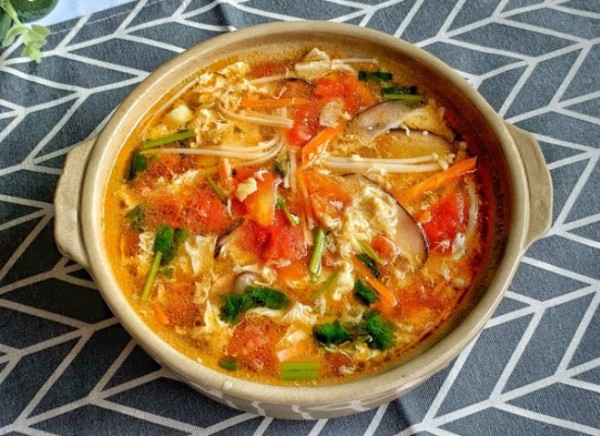 准备好番茄、香菇、胡萝卜、金针菇、火腿肠。食材可以更换或者在这个基础上添加。