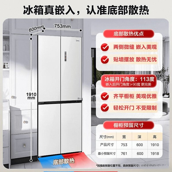 在现代家居生活中,一款高效、智能且设计优雅的冰箱无疑是提升生活品质的关键。美的(Midea)推出的60厘米嵌系列十字对开门超薄嵌入式大容量家用智能变频电冰箱BCD-432WUSGPZM(E),正是这样一款集科技与美学于一身的理想选择。