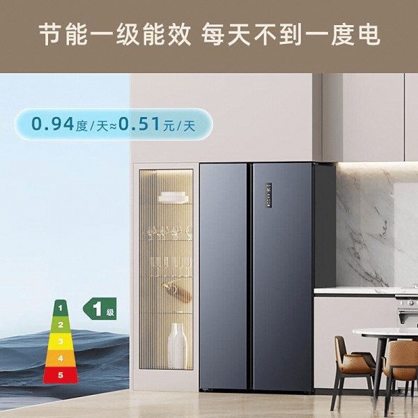 这款冰箱采用对开门双开门设计,不仅外观时尚大气,而且方便用户快速取放食物。其超薄的机身设计,使得冰箱能够轻松嵌入厨房,节省空间的同时,也提升了家居的整体美感。一级能效标准,让这款冰箱在节能环保方面表现出色,为用户节省电费开支。