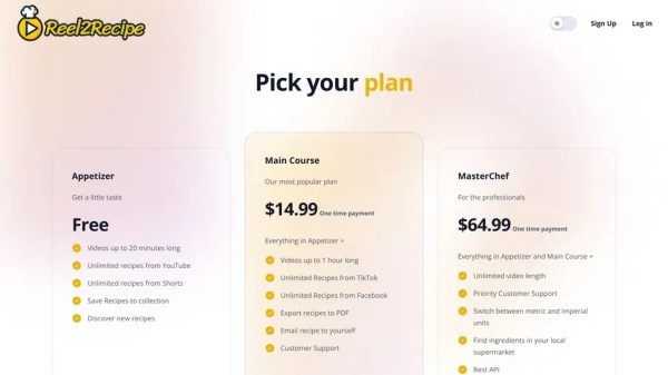 Reel2Recipe将烹饪视频秒变食谱,轻松发现与分享美食。精准提取视频关键信息,助您掌握烹饪技巧。无限量获取YouTube、TikTok和Facebook食谱,支持长达1小时视频转换,自由切换公制英制单位系统。同时提供本地超市食材查找及优先客户支持服务。享受便捷烹饪,从Reel2Recipe开始。