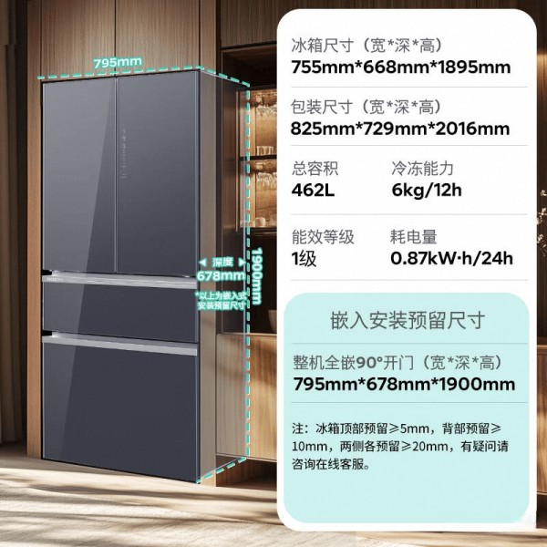 四开门设计不仅美观大方,更实现了空间的大化利用。百变储鲜功能让你可以根据不同食材的需求进行调整,无论是大块肉类还是精致蔬果,都能找到最合适的存放位置。嵌入式设计则完美解决了厨房空间利用的问题,既节省空间又提升了整体的美观度。
