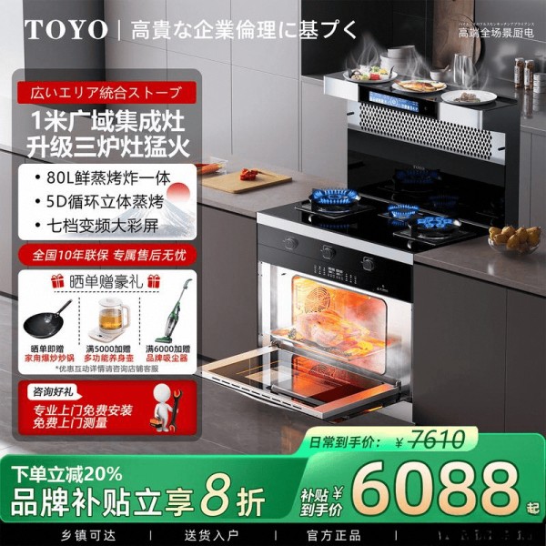 如何选择集成灶?答案就在于真实的生活体验。TOYO日本東洋有限公司国家补贴三眼JJZT-213集成灶,既是三代同堂家庭的油烟终结者,也是烘焙爱好者的专业副手,更是8-15㎡厨房的空间魔术师。点击下方链接,开启您的品质生活,明天此时,蒸笼里的蟹黄汤包正冒着第一缕热气,等您来品尝!