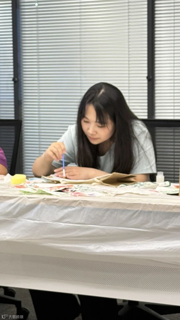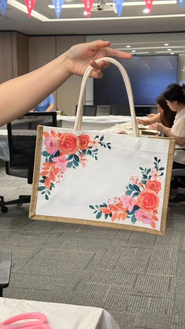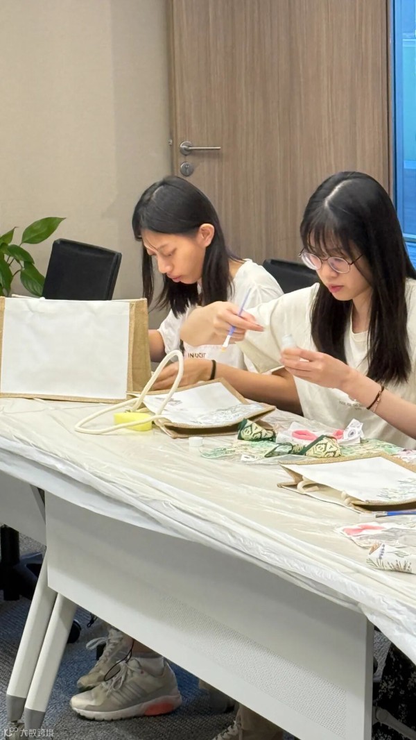 参与者自主挑选印花素材,精心设计图案布局,完成裁剪、拼接与粘贴等工序。最终创作出风格各异、色彩丰富的环保袋作品。从基础构图到个性化表达,每一件作品都体现了独特的审美与匠心,展现了手工艺与生活美学的完美结合。