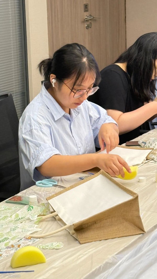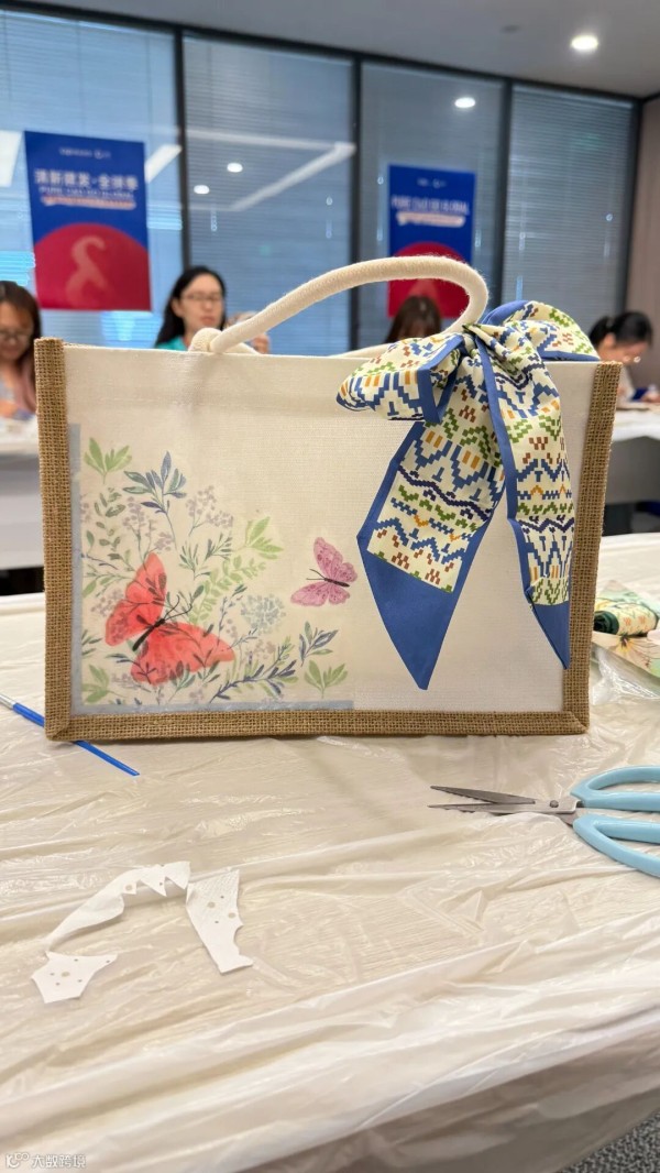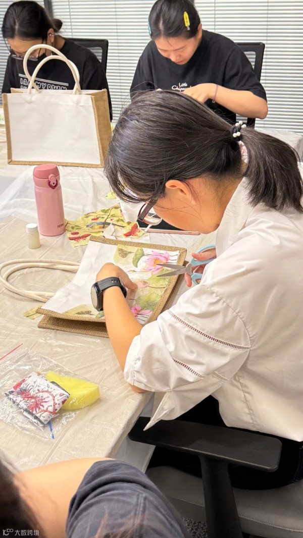 蝶谷巴特(Decoupage)源自法文,意为将精美图案剪裁后拼贴于物品表面,形成独具创意的装饰艺术。通过专业指导与技法教学,参与者可灵活运用日常素材,结合个人创意与想象力,打造富有生活美学的艺术作品。建发(上海)有限公司工会委员会特别策划了此次蝶谷巴特环保袋手工制作活动,倡导环保理念与艺术表达的融合。