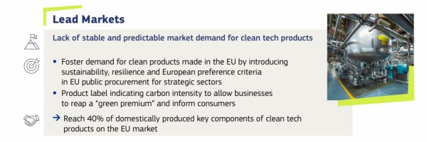 《工业脱碳加速器法案》将通过在公共和私人采购中引入可持续性、韧性和“欧洲制造”标准,增加对欧盟制造清洁产品的需求。