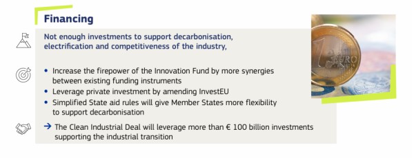 加强创新基金并提议成立“工业脱碳银行”,目标是根据创新基金中的可用资金、部分 ETS 产生的额外收入以及 InvestEU 的修订,筹集 1000 亿欧元的资金。