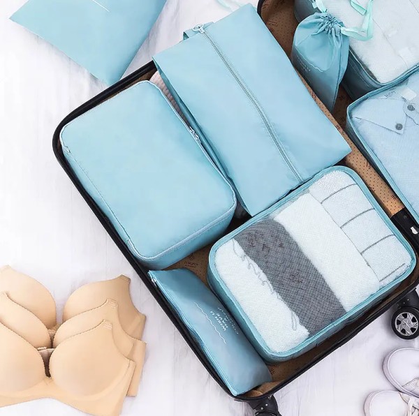 这是一种可以将旅行箱的物品分开收纳的袋子,这样分开收纳能让旅行箱更美观整洁,又能节省空间。这款收纳袋是套装款,有多种不同形状的收纳袋,也有多种颜色可选。
