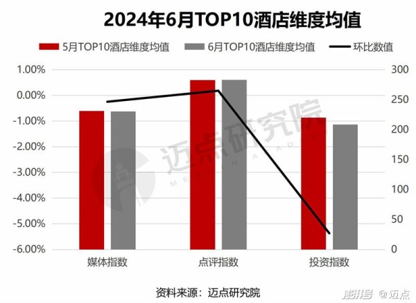 6月TOP10媒体指数为230.47,环比波动率-0.25%,分别为洲际酒店、锦江酒店、希尔顿酒店、丽怡酒店、丽笙酒店、万豪酒店、万达嘉华酒店、万达文华酒店、万达美华酒店、Club Med,其中洲际酒店、锦江酒店、希尔顿酒店本月媒体指数分别下滑0.32%、1.53%、0.58%。