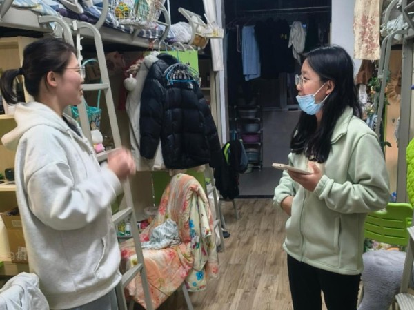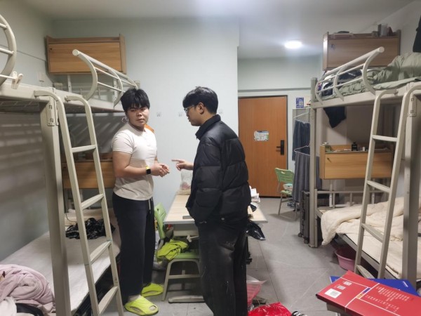 辅导员范月月老师和柳文慧老师通过深入宿舍检查,并询问学生生活状况,提醒同学们做好宿舍的通风,谨防流感。通过深入宿舍与同学们沟通交流,了解同学们针对近期选课、补考的疑问,并耐心解答同学们的问题,鼓励同学们及时调整作息和状态,尽快投入新学期学习和生活中。