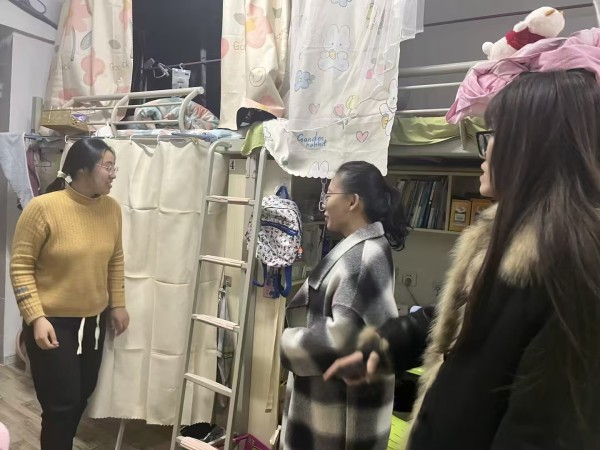 寝室走访过程中,王倩老师和刘阳老师提醒大家及时打扫卫生,保持宿舍整洁,营造舒适的生活环境,尤其是春季流感高发期,更要注意通风和卫生,叮嘱同学们多进行体育锻炼,提高抵抗力。此外,两位老师详细询问了同学们的假期生活、新学期的学习规划以及当前遇到的困惑和需求,并鼓励同学们要做好职业规划,积极参与各类实践活动,努力提升自己的综合素质和能力。