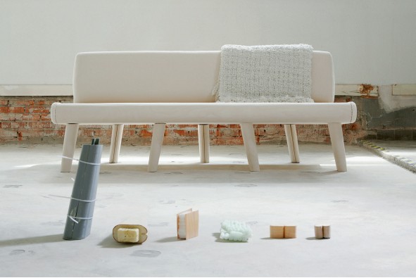 许多观念性的设计作品,都面临着业界和市场量产需求的挑战。托马斯·诺曼(Thomas Norman)设计的“贴面生物泡棉”(veneer topped biofoam,简称 VTBF)复合材质家具则很好地解决了这个问题。VTBF利用现有技术为家具设计创造坚固而轻巧的外形。高密度的生物泡棉置入坚硬的木质材料结构内,能保证体积和稳定性,同时可以被快速回收。这种组合恰是成本合理的家具内部填充。而且,基于其模制化的工艺,量产起来毫无难度。