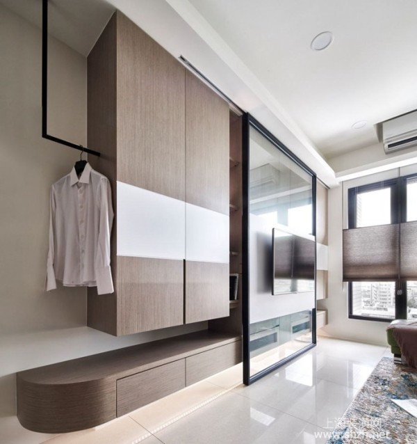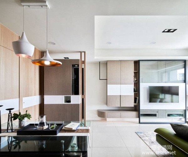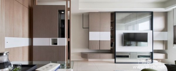 利用电视墙打造强大收纳功能,现代风格室内设计让生活从容优雅