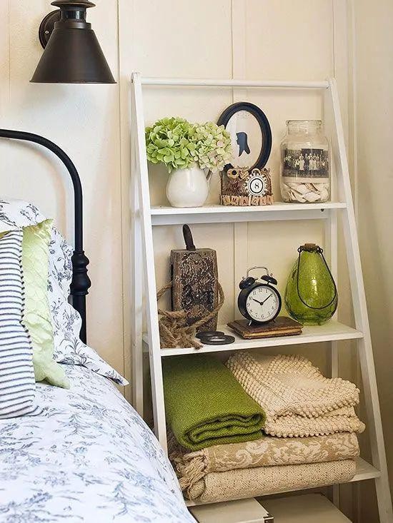 ③梯式搁板。好处是上下深度不一,浅层用来存放手机、小饰品等,深层则可以存放较大的毛毯、替换衣物。