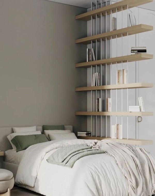 “小面积卧室要充分利用墙面空间”的道理想必很多人都懂,但如果只知道在墙上挂几件衣服,那也太不美观了。既能收纳又能装饰的设计,小编首先推荐搁板。