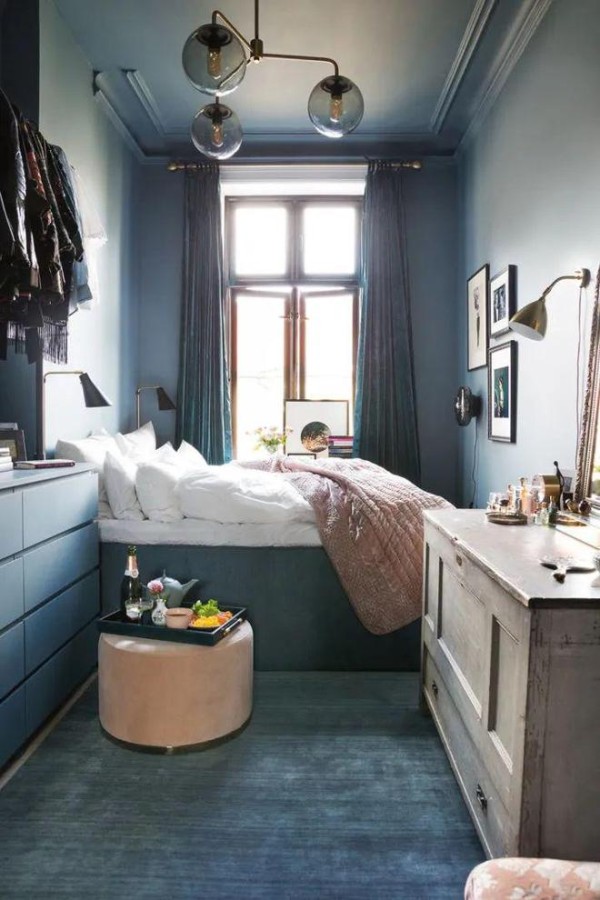 或者简单地在房间里放个小圆凳,替代床头柜的功能,座椅不够时随时可以移动到任何地方。一物多用正是小卧室设计的“心机”。