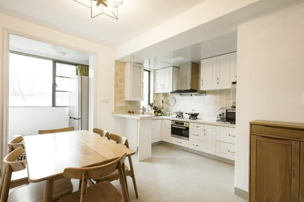 形式上,橱柜可以做成抽屉推拉式,吊柜一般做成30~40cm宽的多层格子,柜门做成对开或折叠拉门形式,方便收纳与取放。 材质上,橱柜板材与台面一定要选择防火、防水、防潮的材料由于现在大部分厨电都是嵌入式,橱柜安装时可同步安装嵌入式厨电。所以根据吊顶的烟管孔将油烟机的安装上墙,其他厨电则根据橱柜预留的空间和使用者的个人习惯,将嵌入式燃气灶、嵌入式消毒柜、嵌入式烤箱/蒸箱等分别安装在相应的地柜或中柜。