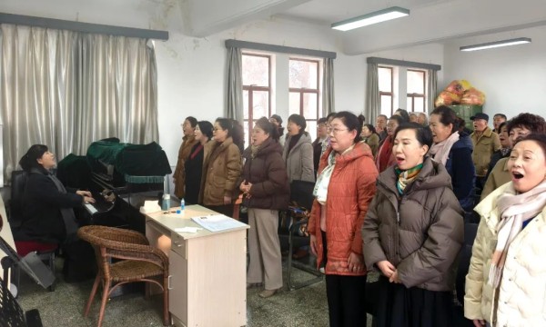 合唱教室中,学员们歌声协和共鸣,各声部配合默契。