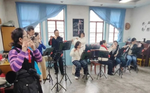 长笛/竹笛课堂上,学员们努力克服气息调控的难题,掌握吹奏技法。