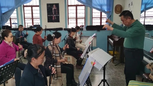 在二胡/板胡课堂,学员们在教师的精心指导下练习指法和运弓技巧。