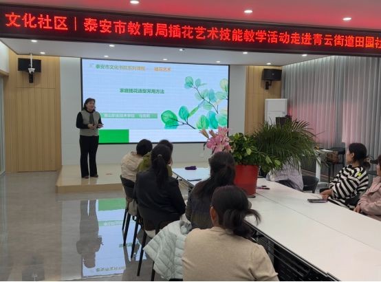 为深入推进社区文化建设,弘扬中华优秀传统文化,近日,“插花艺术技能教学课程”走进新泰市青云街道田园社区。此次活动由泰安市职业技术学院马雪莉老师授课,社区十余名居民踊跃参与,共同体验插花艺术带来的优雅与宁静。