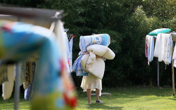 28、晒好的被子切忌拍打,因棉花纤维粗而短,易碎,拍打棉被会使里面的纤维断裂,变成棉尘跑出来,如被子上落了灰尘,用刷子刷刷就干净了。