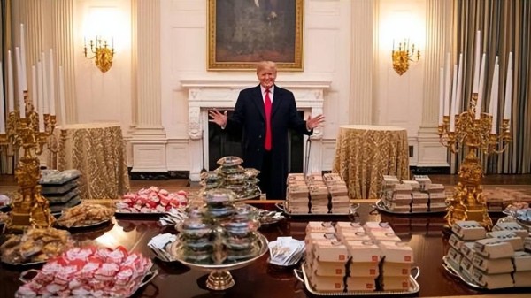 在美国总统特朗普的办公桌上,有一个著名的“可乐按钮”,一按即有冰镇可乐送到。这一习惯反映了他对于快餐文化的偏爱,也是他饮食风格的写照。作为典型的“美式油腻”的代言人,特朗普的饮食习惯堪称不健康的代表。他常年依赖麦当劳等快餐品牌,尤其钟爱巨无霸汉堡和炸鸡,认为这些食物既稳定又干净。在2016年总统竞选期间,特朗普甚至被拍到在私人飞机上享用麦当劳的美味。而进入白宫后,他本可以享受营养师团队的精心烹调,却依然保持着外卖快餐的传统,白宫的专业厨师团队无所事事,因为他不吃他们准备的健康餐,反而更愿意享受他熟悉的快餐。