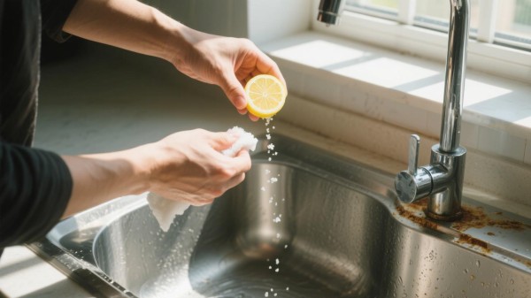 8. 不锈钢水槽发乌?柠檬 + 盐擦出 “新买感”