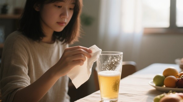 试试用喝剩的啤酒擦:倒少许啤酒在厨房纸上,把杯子里外擦一遍,再用清水冲净。你会发现杯子透亮得像新买的,连指纹都不容易沾!