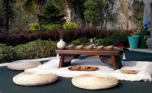 茶席设计就是以茶器为主材,以铺垫等器物为辅材,并与插花等艺术相结合,从而设计、布置出具备完善的习茶功能的一方茶席。