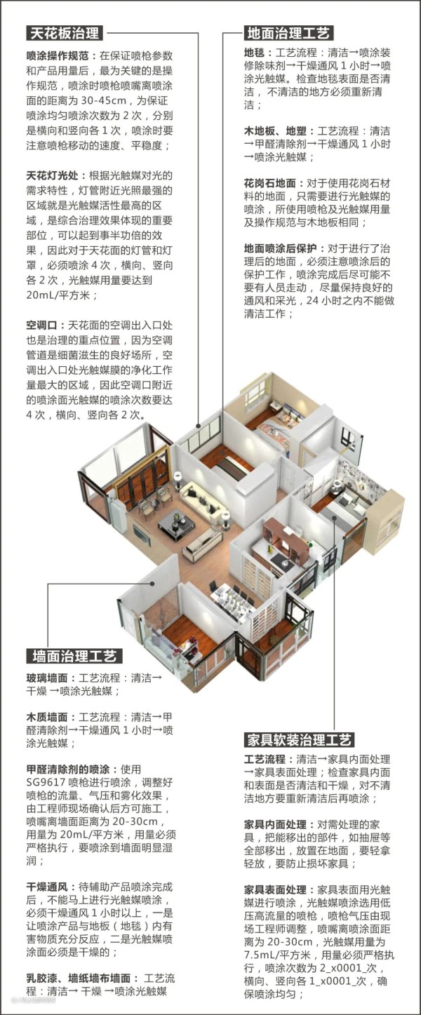 在客户软装家具家电进场后对整个房屋进行彻底的环保治理,确保最终入住后的室内空气质量健康环保。